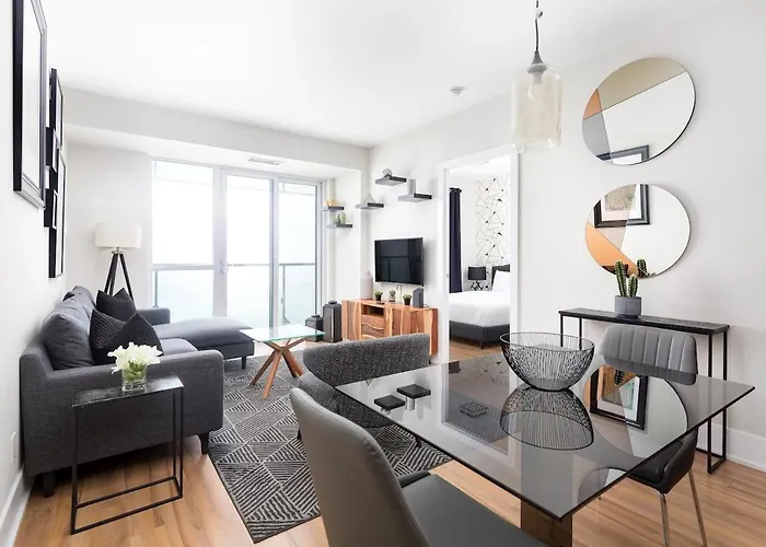 Die Ferienwohnung Skyline Serenity 2 Bed 2 Bath Toronto befindet sich im Viertel Toronto Stadtzentrum von Toronto, rund 10 Gehminuten von der U-Bahn-Station St Andrew entfernt.